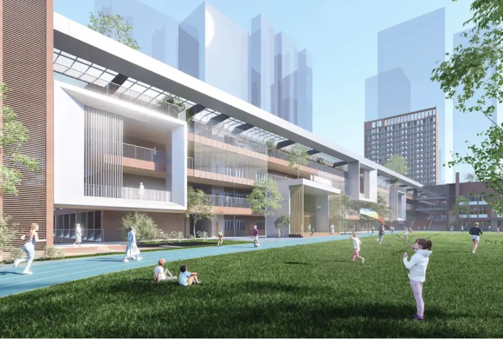 本項目位于深圳市龍崗中心組團的城市商貿功能區,北鄰龍園路,南鄰簡湖路,西側為簡新路,地塊間隔大興路,距龍城廣場地鐵站約400米。項目用地規模為31160平方米,總建筑面積約為87875平方米,教職工宿舍約17516平方米,其它教學用房約69034平方米,最大單體建筑面積超20000平方米,共72班(48班小學+24班初中),可提供3360個學位,滿足片區義務教育需求,為促進龍崗區教育事業的發展起到積極作用,項目目前已動工建設,預計2024年開學。