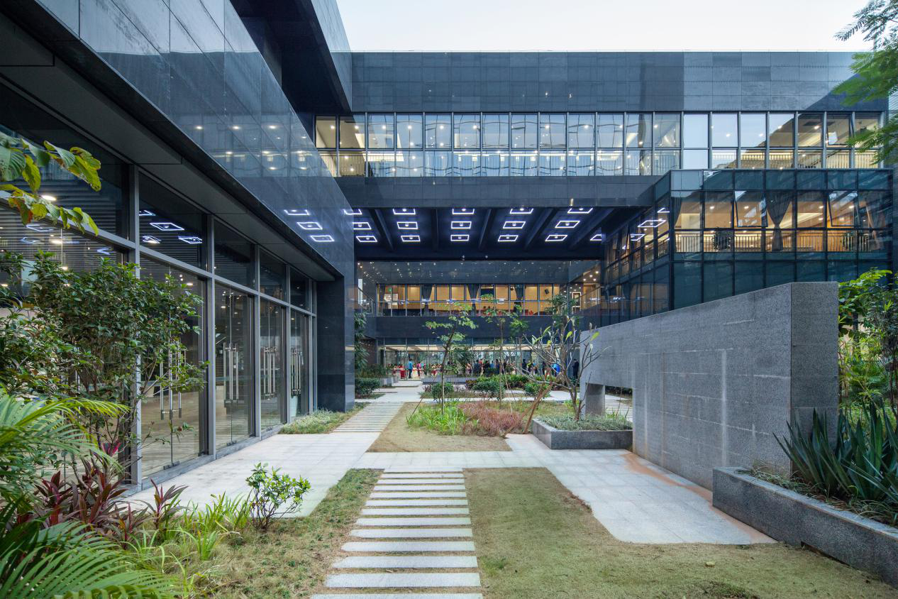 項目為原址改擴建工程,用地局促狹長,周邊均為已建成公建和成熟住區,設計中如何合理布置功能與流線成為設計的核心。經過項目組深入研究與探索實踐,最終項目呈現出內外人流分區明確、相互不受干擾的流線,并且運用內部園林體系化解了用地緊張局促功能復雜多樣的矛盾,同時發揮中國建研院綜合技術優勢,創造性地應用新材料、新技術,將功能與外形完美結合在建筑中。