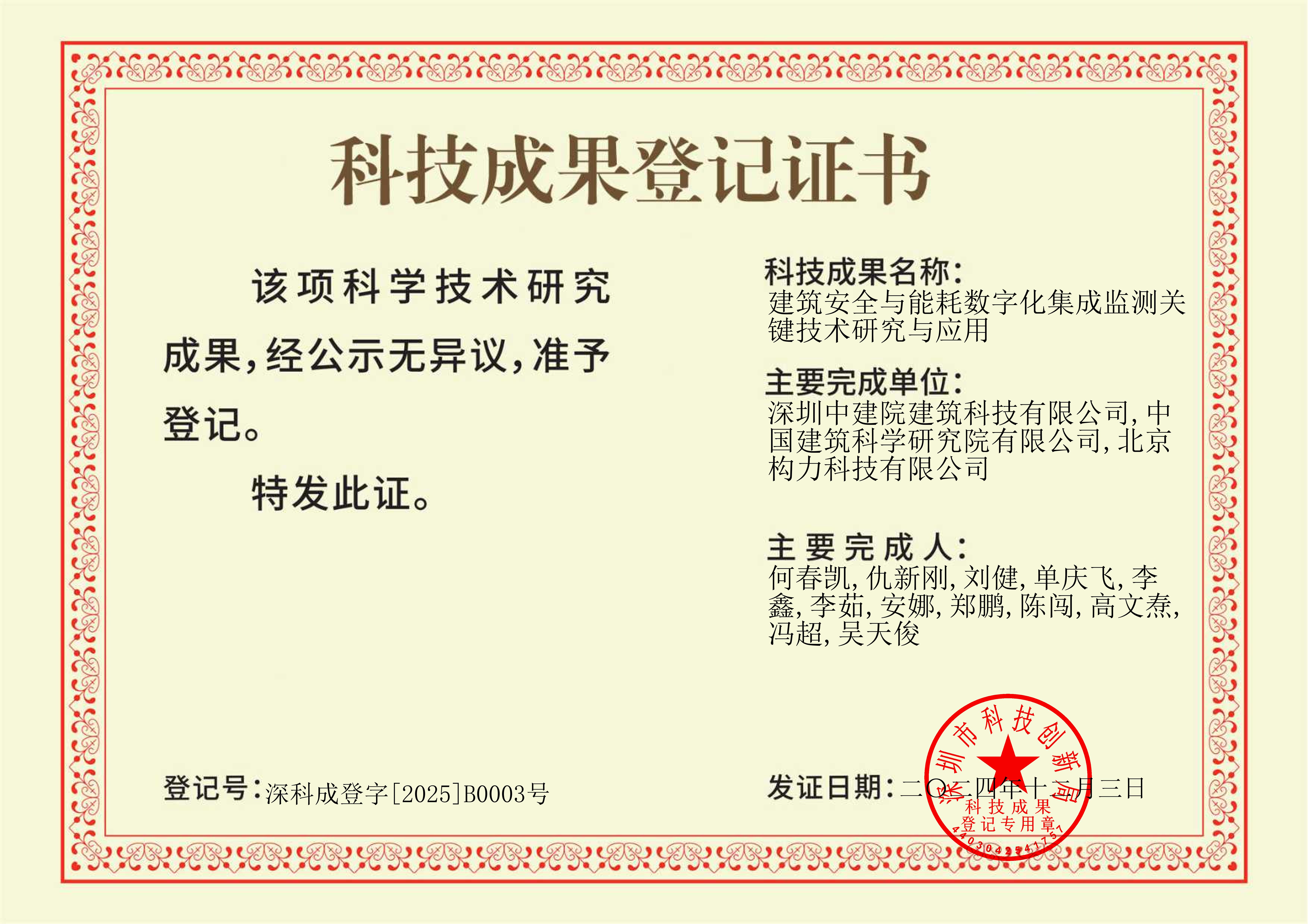 ??2025年1月20日,國(guó)家建筑工程技術(shù)研究中心發(fā)布15項(xiàng)創(chuàng)新成果,中國(guó)建研院深圳分公司并國(guó)家建筑工程技術(shù)研究中心灣區(qū)研究院(以下簡(jiǎn)稱“灣區(qū)研究院”)的科技成果“建筑安全與能耗數(shù)字化集成監(jiān)測(cè)關(guān)鍵技術(shù)”成功入選。
