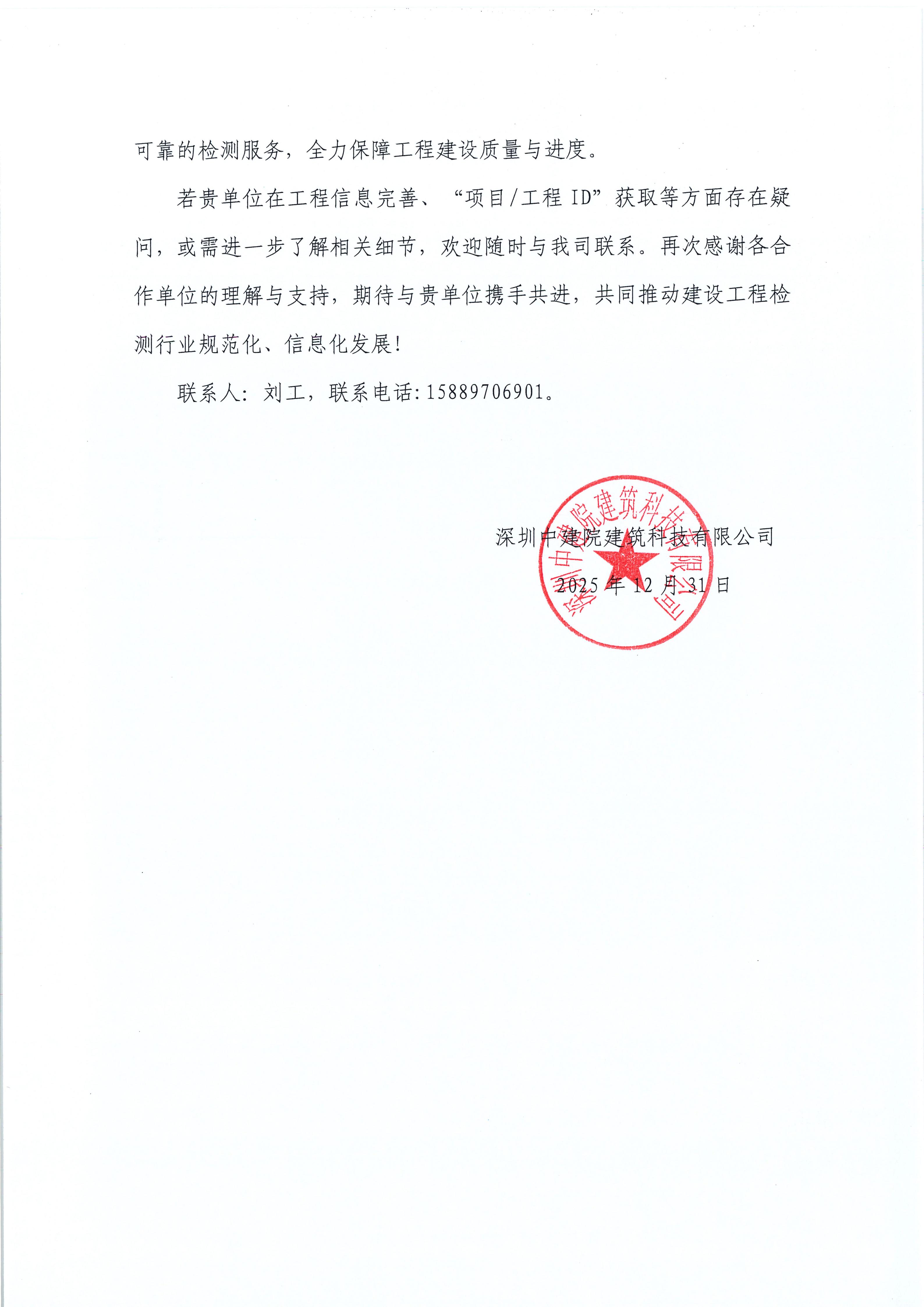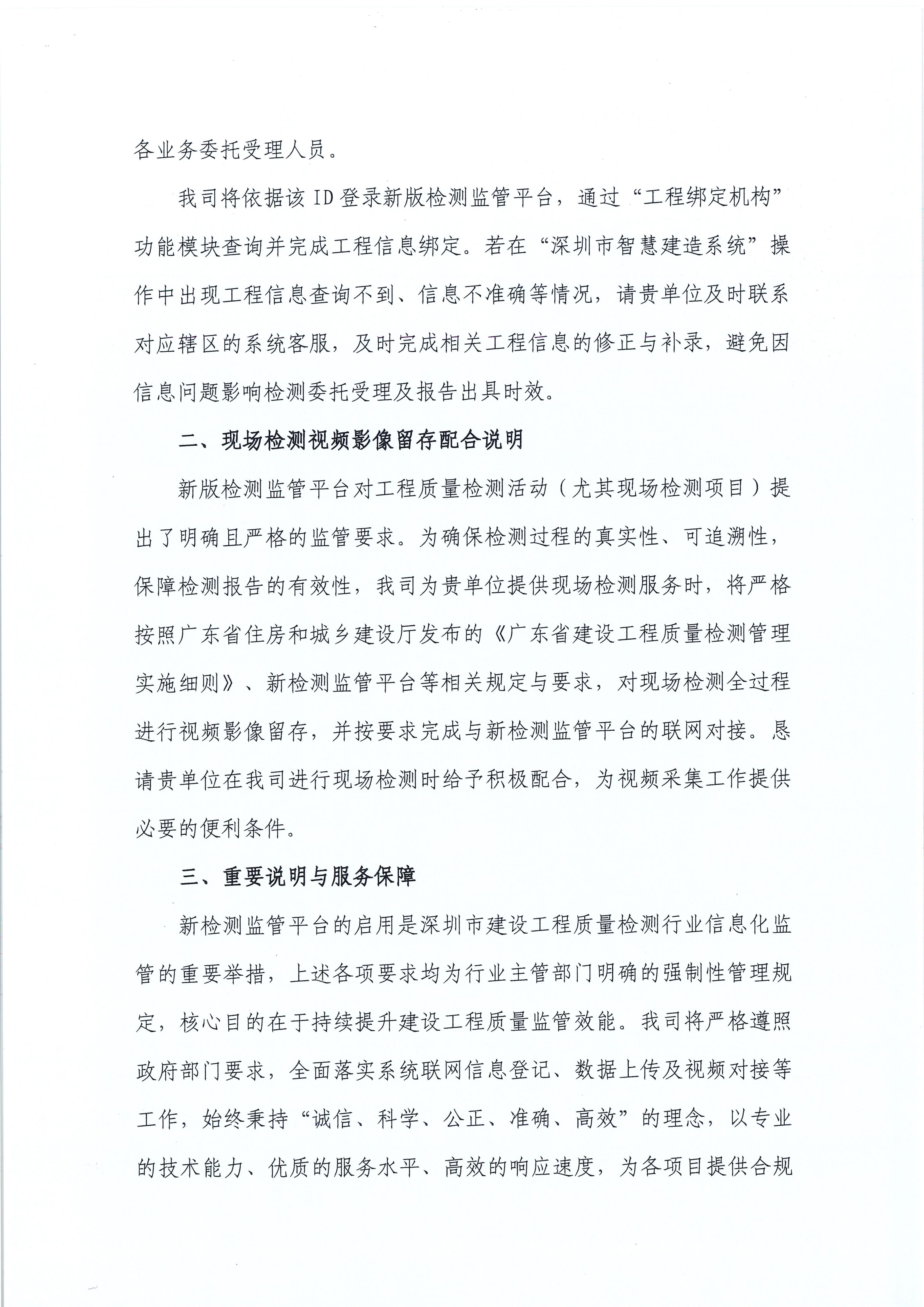 關于深圳市啟用新版建設工程質量檢測監管平臺的告知書