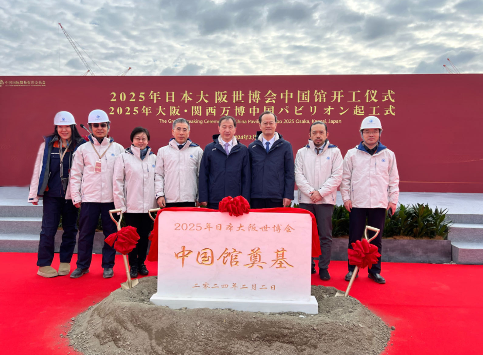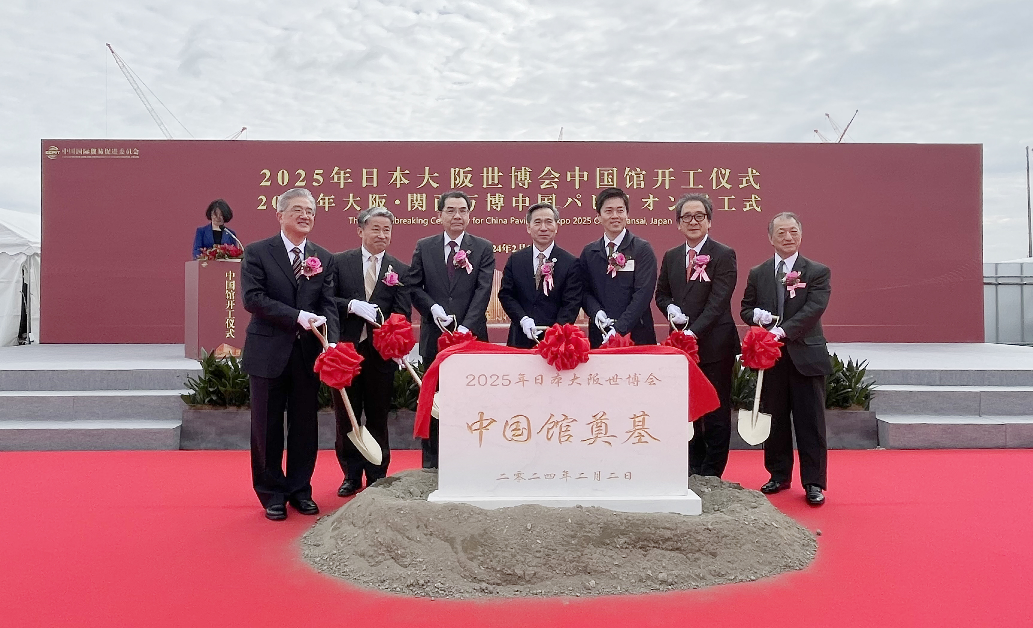 2月2日上午,“2025年日本大阪世博會中國館”開工儀式在大阪濱水夢洲世博園區(qū)隆重舉行。中國貿(mào)促會會長任鴻斌,中國駐日本大使吳江浩,中國駐日本大阪總領(lǐng)事薛劍,中國駐日本大使館經(jīng)濟(jì)商務(wù)公使宋耀明,日本大阪府知事吉村洋文,日本世博協(xié)會事務(wù)總長石毛博行,日本外務(wù)省關(guān)西擔(dān)當(dāng)大使姬野勉,中國建研院黨委書記、董事長王俊,黨委委員、副總經(jīng)理肖從真等出席儀式。